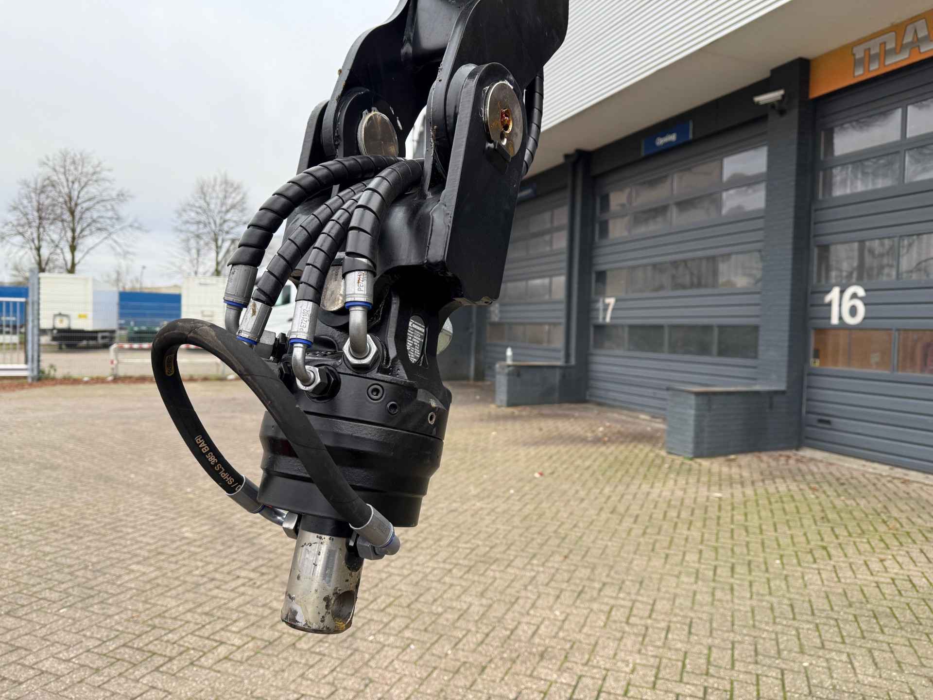 slanggeleiding voor grijper en rotator geheel beschermd gemonteerd zijn in de