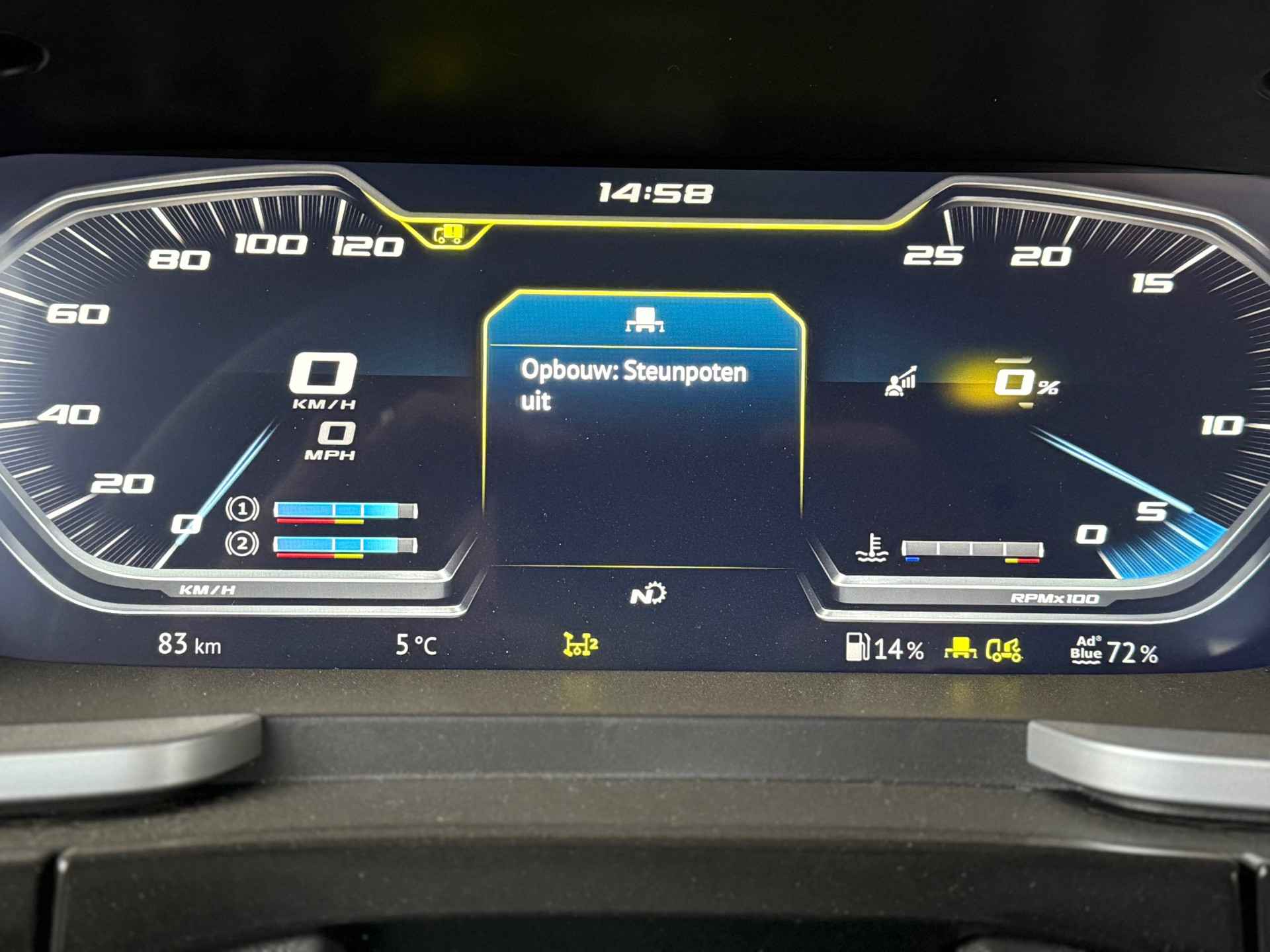 * Hydraulisch uitschuifbare steunpootkokers tot max. 3,9 mtr incl. signalering van de